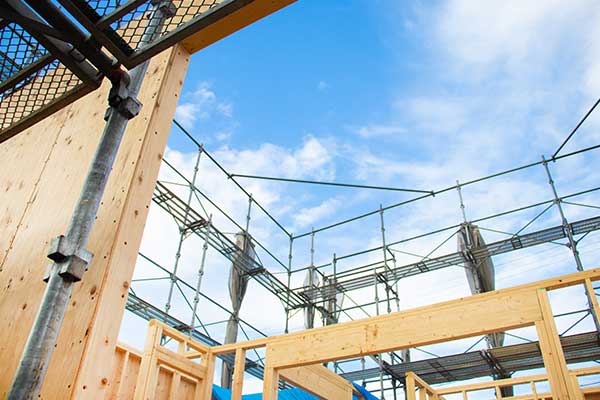 フレーミングとは工場であらかじめ加工した木材パネルを現地で取り付ける工事です。建物の床部分や壁部分などを作り上げ、建物の躯体全体を仕上げていきます。
